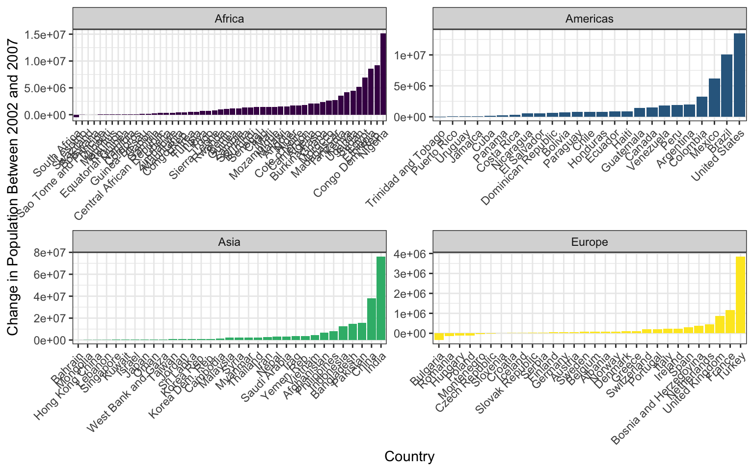 Notice the order of countries within each facet. You’ll have to look up how to order them in this way.