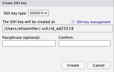 Highlight and copy the filepath listed under “The SSH key will be created at:” using Ctrl C or Command C